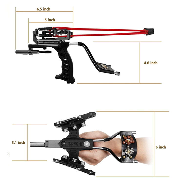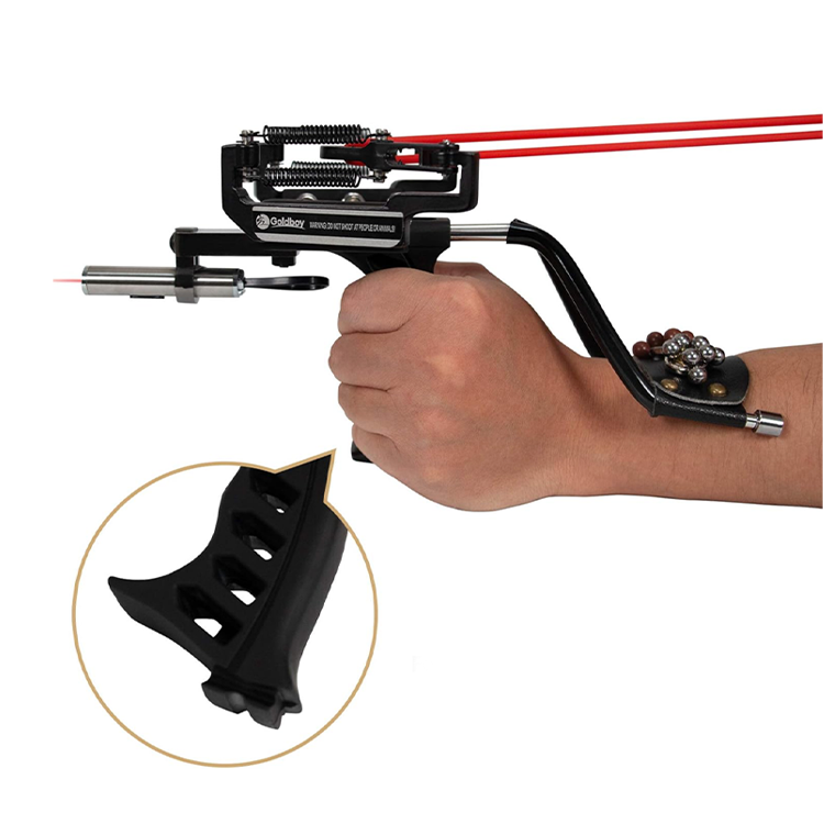 Progettato per potenza e precisione, la combinazione della molla e della gomma resistente del fionda garantisce tiri potenti e costanti, ideali per la caccia di piccola selvaggina o per il tiro di precisione in ambienti impervi. La mira laser integrata migliora l'accuratezza del targeting, assicurando che ogni tiro colpisca il bersaglio con precisione.